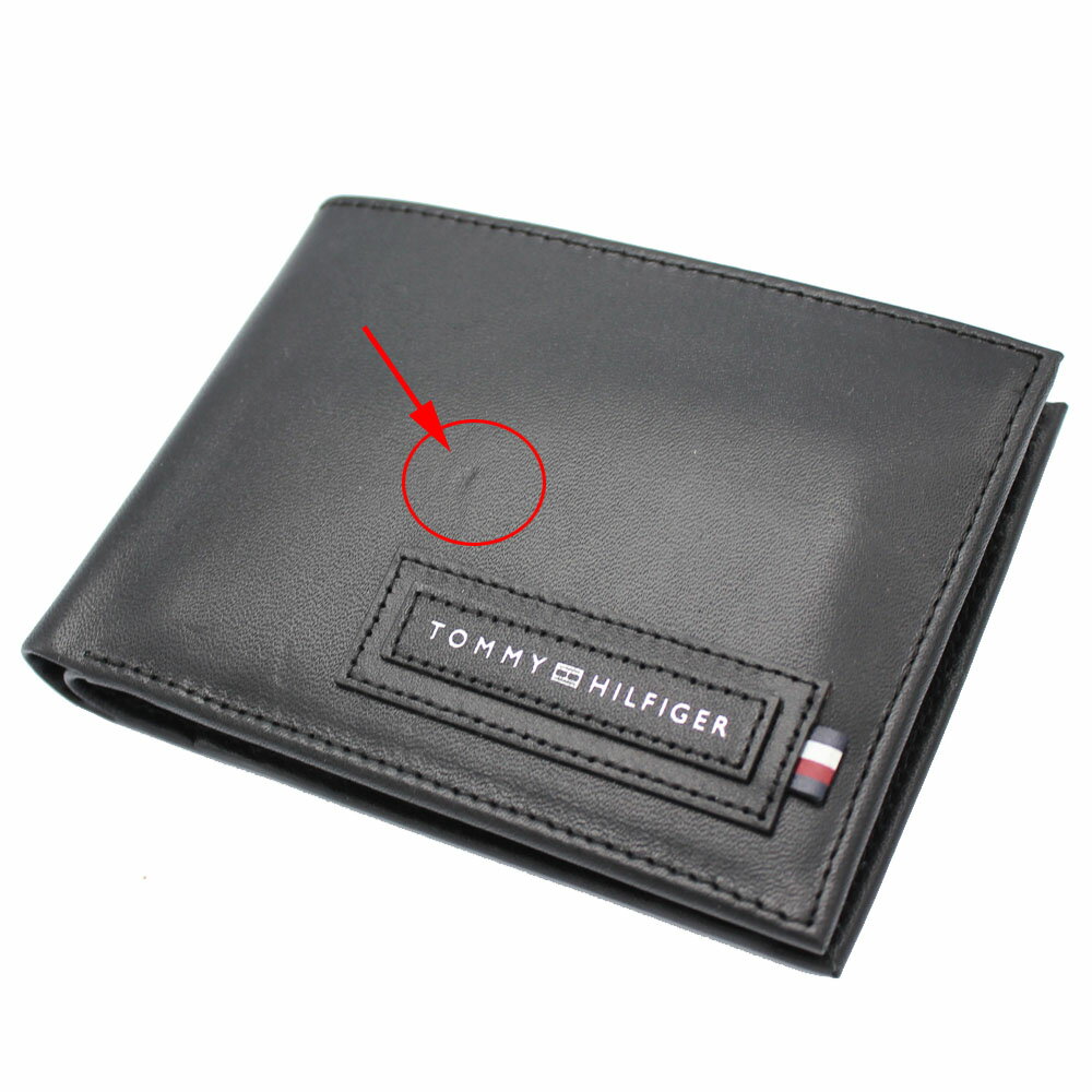 ■■■ 訳あり特価商品 ■■■ #189 TOMMY HILFIGER ≪トミーヒルフィガー≫ ふたつ折り財布 AM0AM06009 ブラック 黒色 レザー 牛革 カード収納7カ所、フリーポケット4カ所 折財布※※ 財布正面にへこみ跡がございます。
