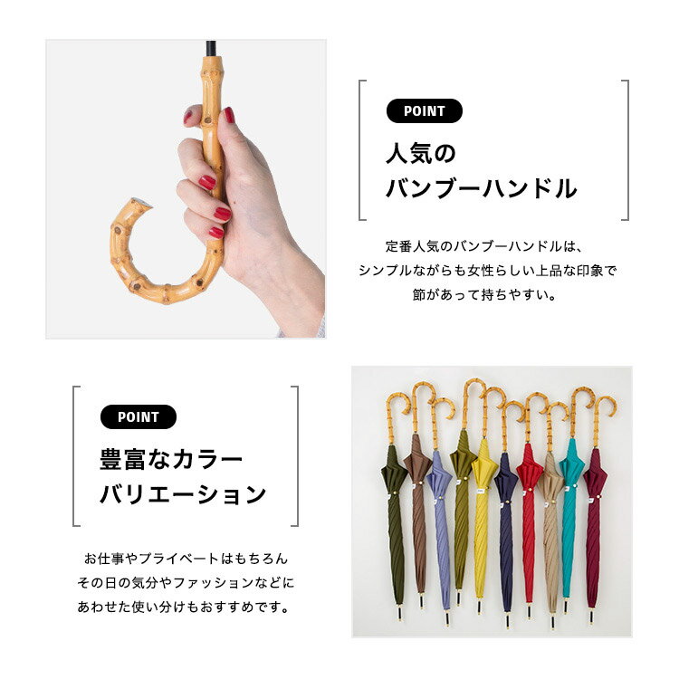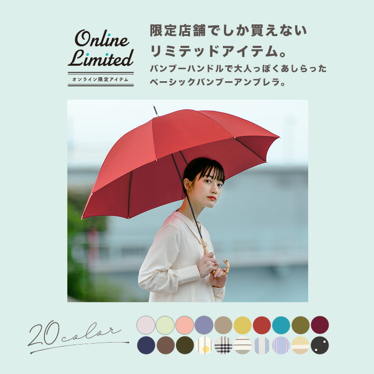 オンライン限定《おすすめアイテム★送料無料》【Wpc.公式】長雨傘 ベーシックバンブーアンブレラ【長傘 撥水 58cm レディース 女性 通勤 通学 おしゃれ 晴雨兼用 UVカット シンプル 無地 ドット ストライプ チェック カジュアル】