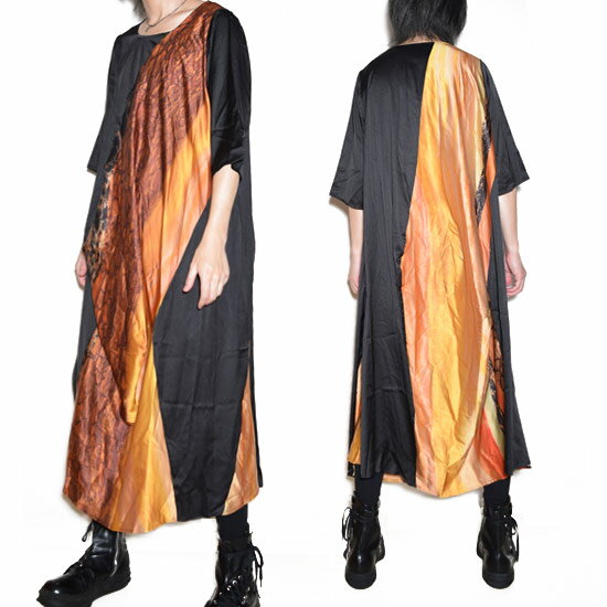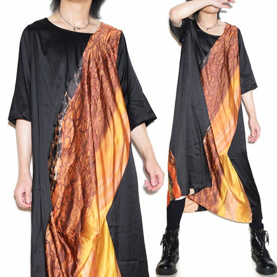 ワンピース メンズ モード系 チュニック メンズ V系 ワンピース レディース ムラ柄 バイカラー カットソー ロング丈 チュニックー モード系 トップス 大きいサイズ 送料無料 2022 春 秋 冬 新作 ホスト V系 ヴィジュアル系 ファッション 個性的 衣装 韓国 alcw